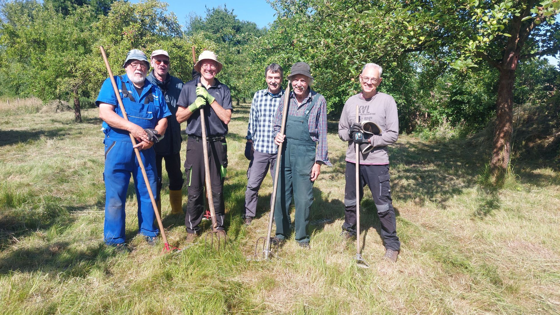 Viele Helfer auf der Streuobstwiese in Niederaden