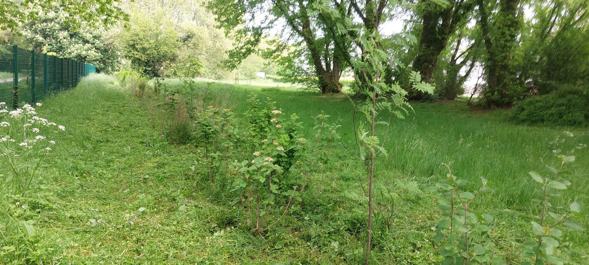 Im Mai 2023 war die Hecke kniehoch von Gras überwuchert und wurde deshalb vom Arbeitskreis freigemäht.