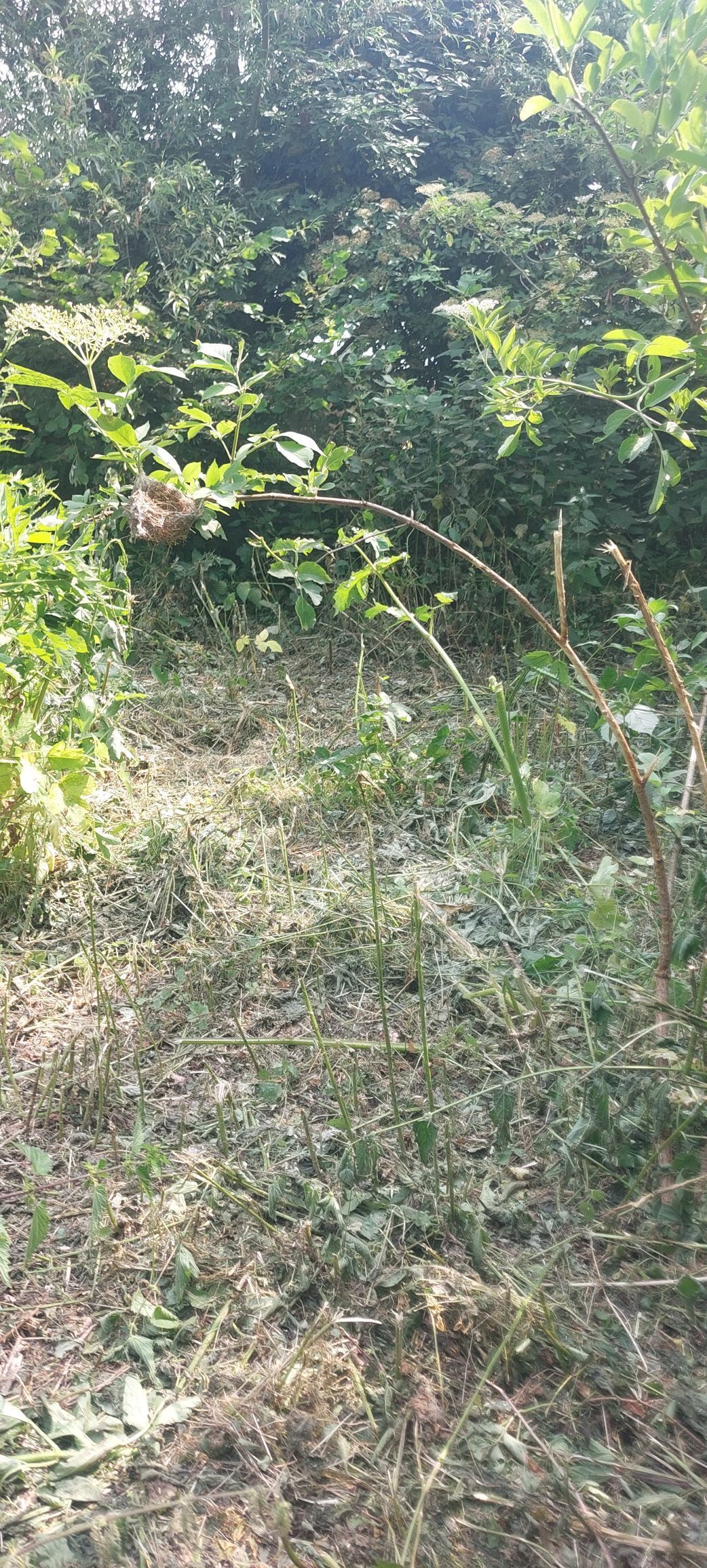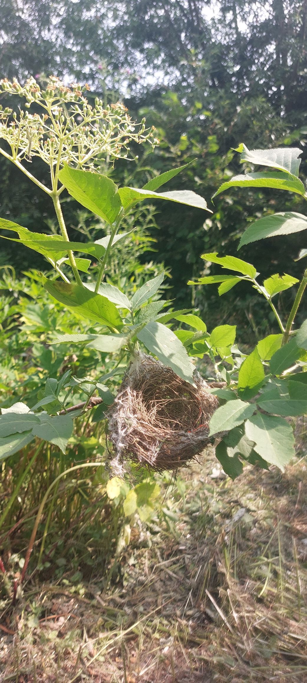 Während der Wiesenmahd entdeckten wir an einem Zweig ein gut verstecktes Vogelnest.