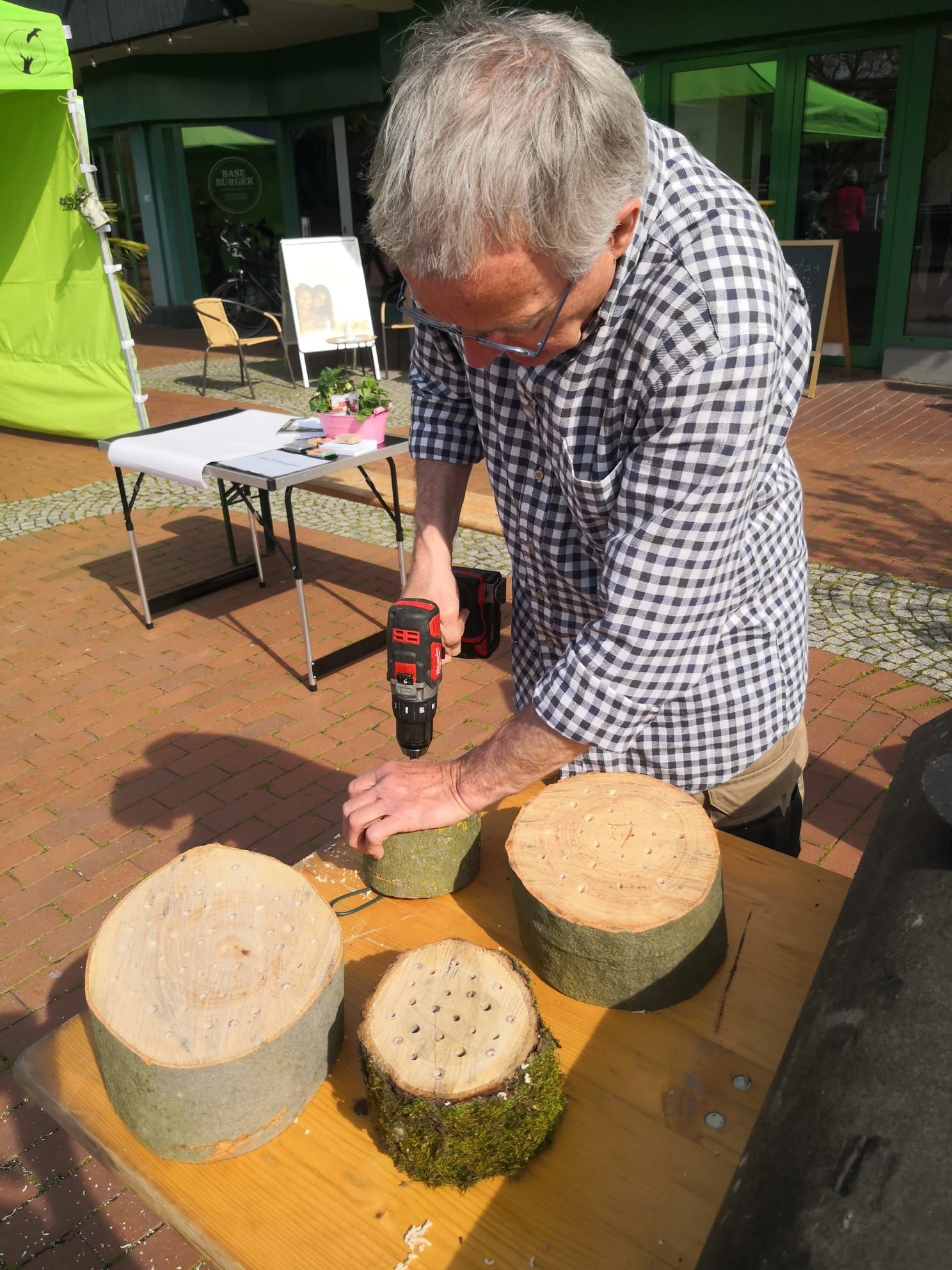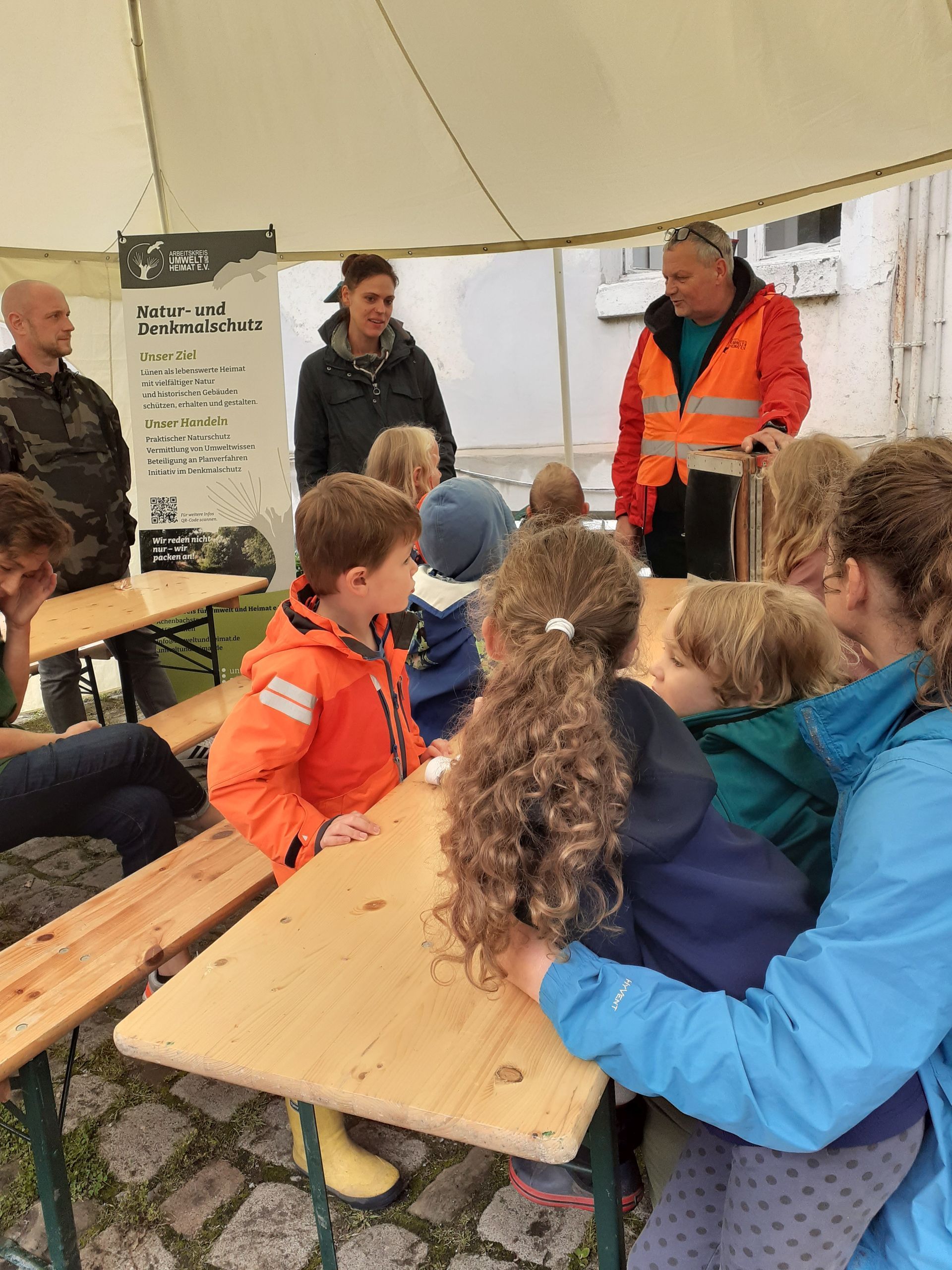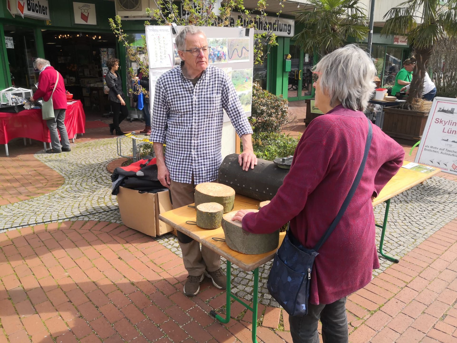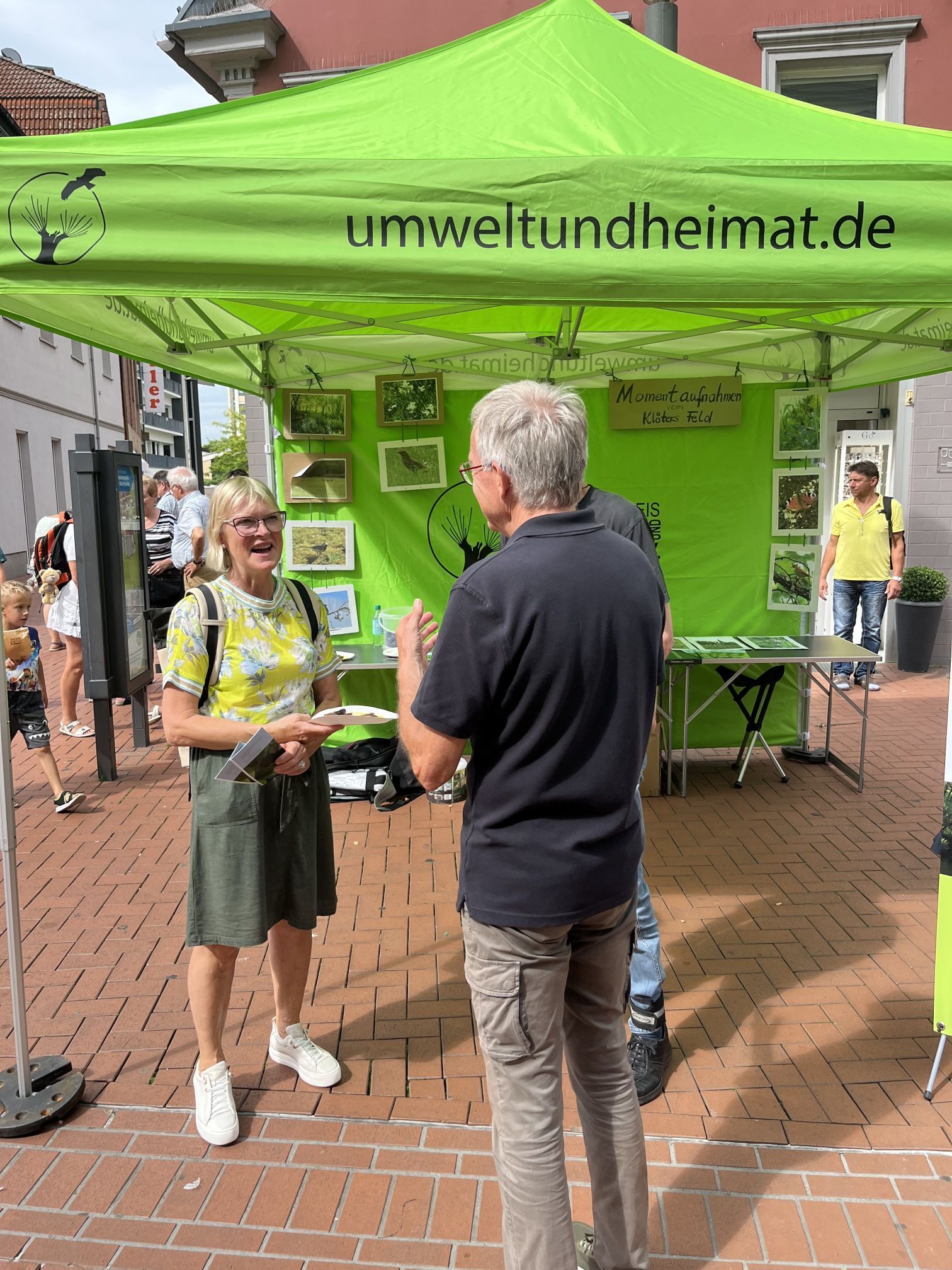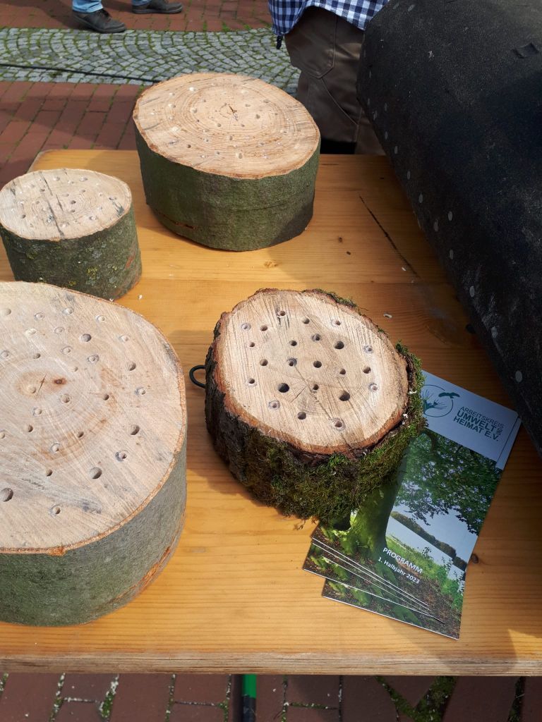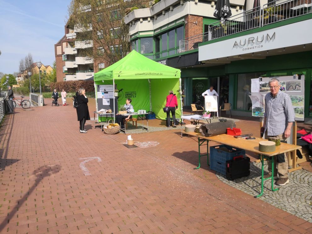 Schon von Weitem leuchtete der grüne Pavillon unseres Arbeitskreises am Anfang des Rundweges. Die Vorbeiziehenden waren allesamt gut gelaunt, sogar als sie bei strömendem Regen zum Nikolaus auf den Hauptplatz wollten. Viele nahmen sich Zeit für unsere Erklärungen zu den Zielen des Arbeitskreises, zugegebenermaßen angelockt durch kleine Proben vom Apfelbrot und Apfelsaft. Und viele nahmen sich unseren Flyer zum 1. Halbjahr 2024 und einen kleinen Zweig Rosmarin mit weihnachtlicher Schleife mit auf den Heimweg. Die Standbesatzung hat in den drei Tagen alles gegeben. Besonders ist hervorzuheben, dass drei neu in den Verein eingetretene Damen sofort bereit waren, dick eingemummelt ihren Charme für unsere Sache zu versprühen.