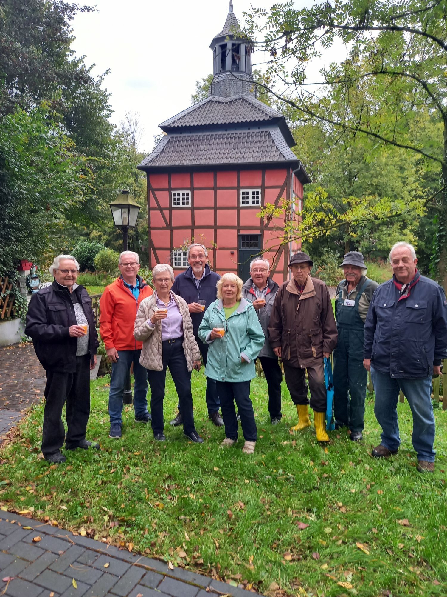Am 19.10.23 trafen sich die Arbeitskreismitglieder Klaus Neuhaus und Klaus Papius mit einigen Bürgern aus Niederaden am Haus Oberfelde in Niederaden. Von Klaus Papius erfuhren die Teilnehmer geschichtliche Details über den ehemaligen Adelssitz Haus Oberfelde. Interessant waren auch die Ausführungen über die angrenzende Streuobstwiese, die seit 1986 vom Arbeitskreis betreut wird. Über die anstehenden Schnitt- und Pflegemaßnahmen im kommenden Winter 2023/2024 berichtete Klaus Neuhaus. Zum Abschluss des informativen Treffens, konnten die Anwesenden den aktuellen Apfelsaft probieren, der aus Äpfeln unserer heimischen Streuobstwiesen hergestellt wurde.