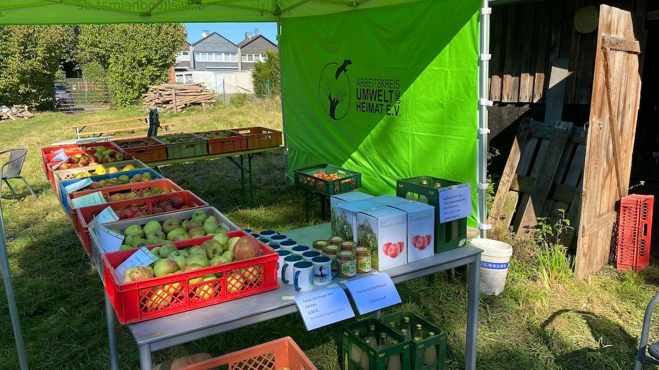 Er und andere Mitglieder des Arbeitskreises für Umwelt und Heimat e.V. haben die über 200 Apfelbäume schon vor Jahren gepflanzt und pflegen sie gemeinsam. Aktuell wird die Apfelernte vorbereitet. Fragen zu den verschiedenen Apfelsorten können gerne gestellt werden, ein Erfahrungsaustausch zu Geschmack und Verträglichkeit ist willkommen.