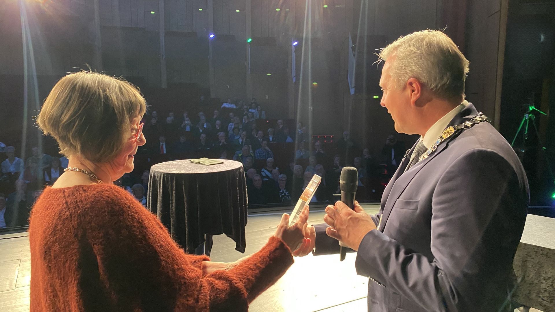 Im Rahmen eines Festaktes im Hilpert-Theater hat die Stadt Lünen am 24.01.2025 neben dem jährlichen Ehrenamtspreis erstmals Heimatpreise des Landes NRW verliehen. Eine Jury aus dem Ältestenrat hatte die Preisträger vorgeschlagen, die der Rat der Stadt einstimmig bestätigte. Mit den Heimatpreisen wurde der Arbeitskreis für Umwelt und Heimat auf dem dritten Platz ausgezeichnet, auf dem zweiten Platz die Bürgerbücherei Brambauer und auf Platz eins der Freundeskreis Südpark. Die Heimatpreise sind mit 2.500, 1.500 und 1.000 Euro ausgestattet. Dazu wurde Regina Kesting als Vertreterin des Arbeitskreises vom Bürgermeister eine Gratulation ausgesprochen und – neben einem Strauß Blumen – eine kleine Steele des Landes NRW überreicht.