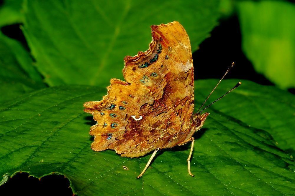 Der C-Falter (Spannweite 42-50 mm) fliegt in lichten Wäldern , Auen und auch in unseren Gärten. Auf der Oberseite ist die Grundfärbung der Flügel des C-Falters orange. Darauf befindet sich ein charakteristisches Muster aus gelblichen, braunen und schwarzen Flecken. Das namensgebende Merkmal dieser Tagfalterart ist auf der Unterseite der Hinterflügel zu finden: Dort tragen die Tiere ein weißes “C” auf bräunlichem bis graugelbem Grund.