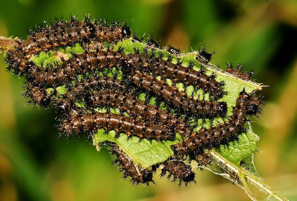 Für die Eiablage werden schattig stehende Brennnesselbestände an Waldwegen oder Gräben bevorzugt. Aus den Eiern schlüpfen schwarze Raupen mit zahlreichen dunklen Dornen.Je nach Jahreszeit schlüpfen aus den Puppen entweder nach zwei bis drei Wochen die Schmetterlinge der Sommergeneration, oder aber die Tiere überwintern als Puppe. Fotos: J. Heinrich