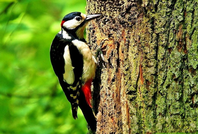 Der Mittelspecht kommt vorwiegend in Eichenwäldern mit einem hohen Altholzanteil vor. Er lebt heimlicher, ist seltener und auch nicht so ruffreudig wie der Buntspecht. Man bekommt ihn deswegen auch nicht oft zu Gesicht. Vom Buntspecht unterscheidet er sich durch seine rote Kopfkappe und den nur leicht roten Unterschwanz- und Bauchfedern.
