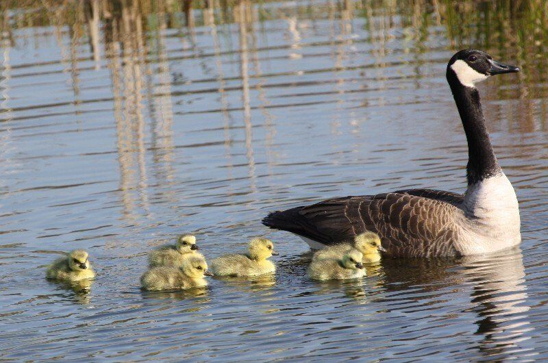 Die Kanadagans stammt aus Nordamerika und ist seit ca. 40 Jahren bei uns heimisch. Man hielt sie zuerst in Zoos und auf Parkteichen. Von hier aus breiteten sich "Flüchtlinge" weiter aus. Kanadagänse brüten mittlerweile nicht nur in der Lippeaue, sondern an allen größeren Gewässern. Im Winterhalbjahr können Ansammlungen von mehreren hundert Individuen beobachtet werden. Auf den Wiesen und Weiden in der Lippeaue finden sie dann genügend Nahrung.
