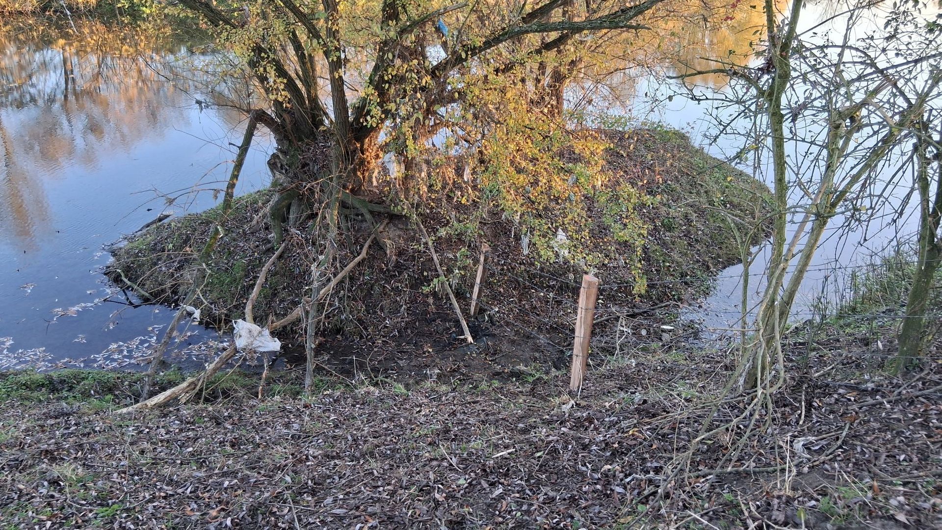 Am Freitag, den 07.11. wurde es etwas lauter in der Lippeaue. AK-Mitglieder hatten sich verabredet, um den alten Zaun auf unserem Grundstück teilweise zu erneuern. Mit einem motorbetriebenen Erdbohrer wurden Löcher gebohrt und von Hand die Eichenpfähle in die Erde geschlagen. Am Lippeufer war es teilweise sehr beschwerlich die Zaunpfähle zu setzen, insbesondere wenn noch eine vorgelagerte "Insel" mit abgesichert werden musste.