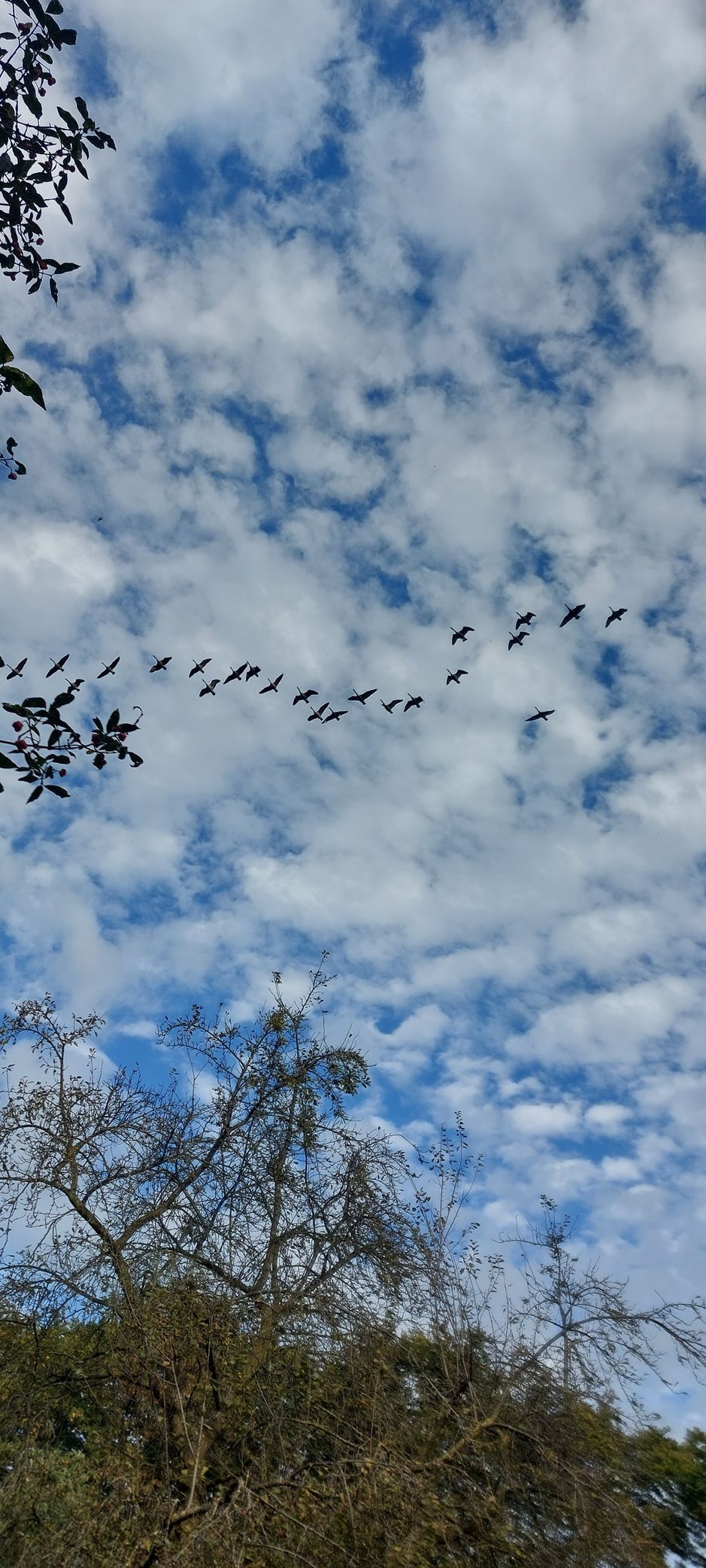 Überraschenderweise konnte man aber auch einige Kranichtrupps beobachten, die plötzlich umdrehten und in Richtung Norden/Nord-Ost flogen. Die wetterfühligen Tiere hatten wohl die Regenfront aus dem Westen erkannt und zogen sich deshalb zurück.
