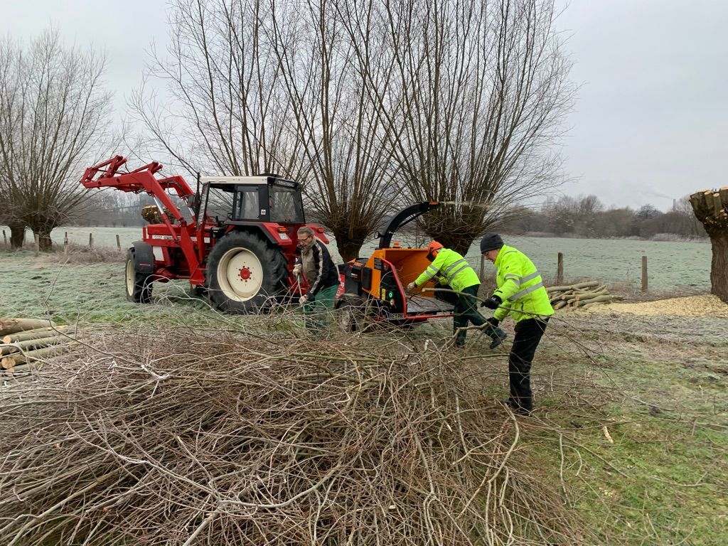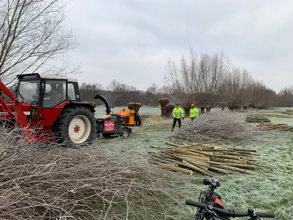 Am 21. Januar wurden die abgeschnittenen Weidenäste in der Lippeaue gehäckselt.