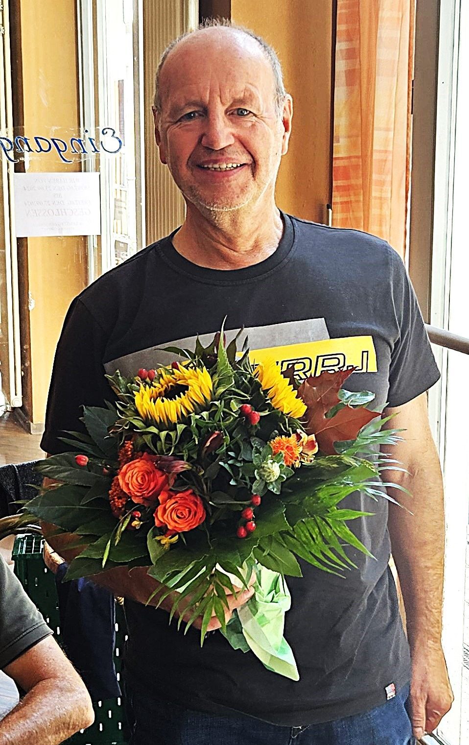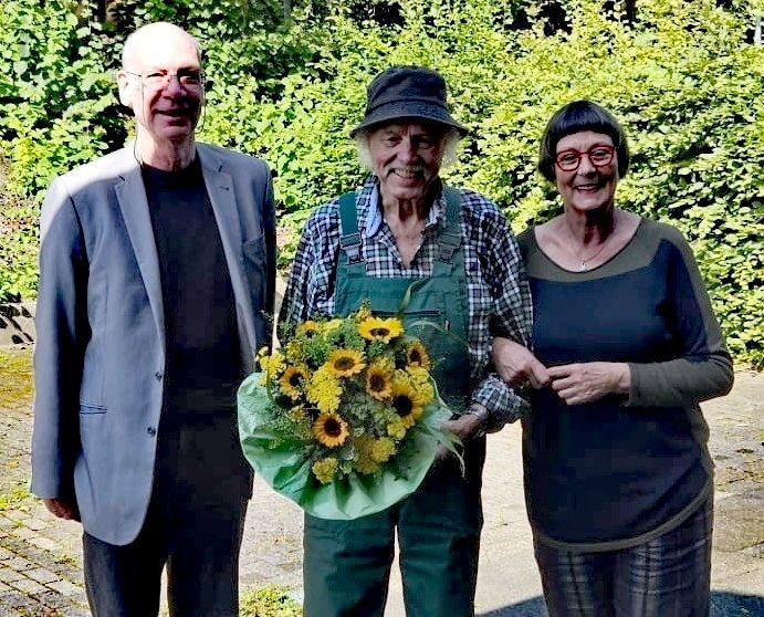Sie überreichten Klaus Papius einen Strauß Blumen und einen Brief vom Arbeitskreis.