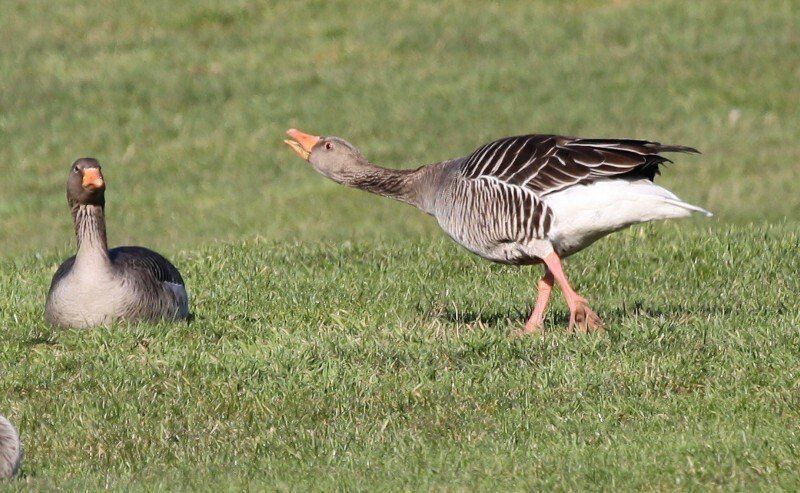 Die Saatgans ist dunkler als die Graugans und hat einen dunklen Schnabel mit einer orangenen Binde. Die Graugans hat dagegen einen orange gefärbten Schnabel. Fotos: H. Knüwer, Texte: A. Pflaume